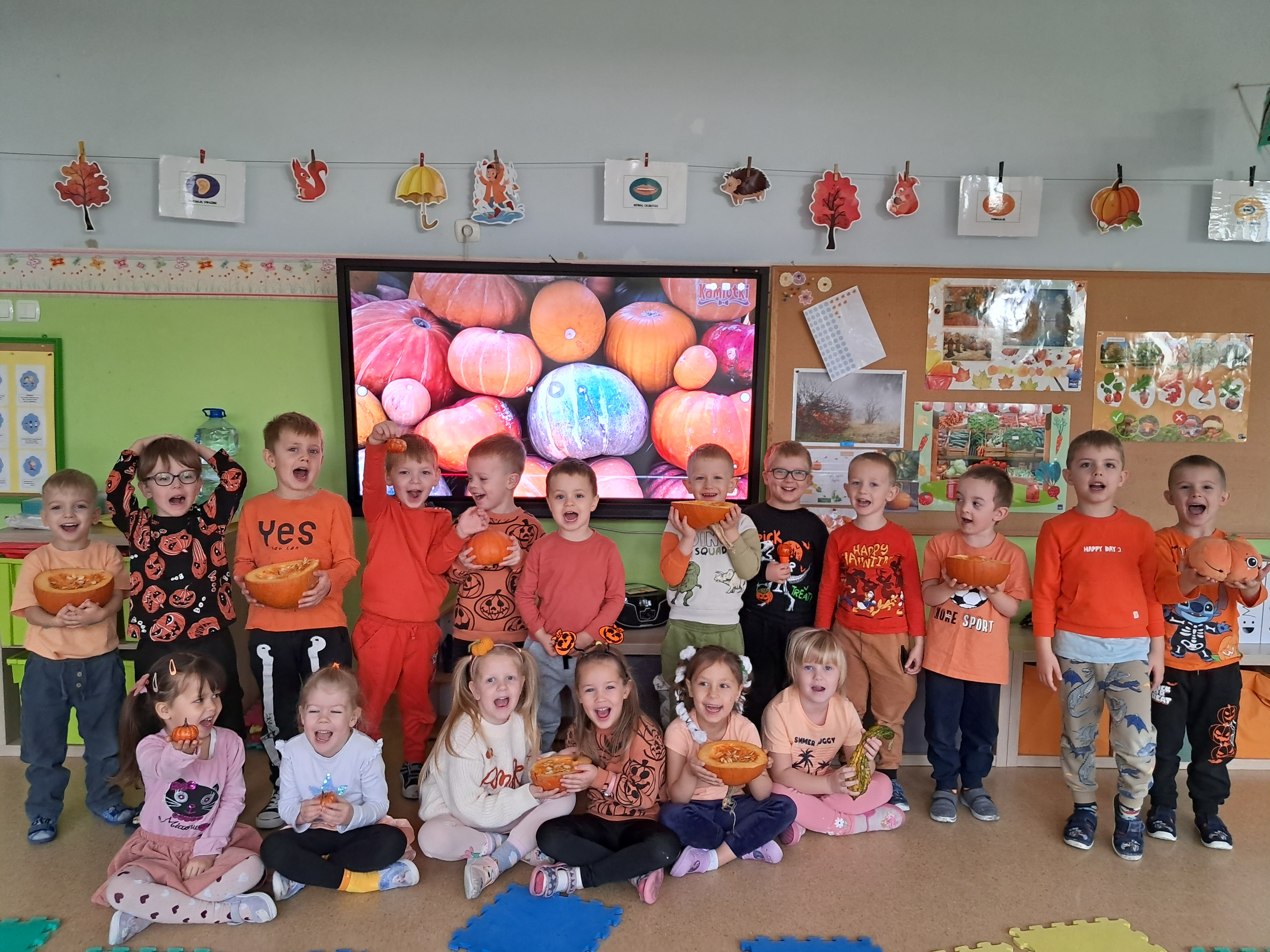 Ten dzień obfitował w kilka wydarzeń w naszej grupie. Obchodzilismy Dzień Dyni, udalismy sie na spacer, by zapalić znicze pod pomnikiem upamiętniającym Admirała Józefa Unruga oraz pomnikiem najmłodszego z harcerzy, który zginął w obronie Kępy Oksywskiej. Potem przyszedł czas na wspaniałą jesienną zabawą w ogrodzie przedszkolnym