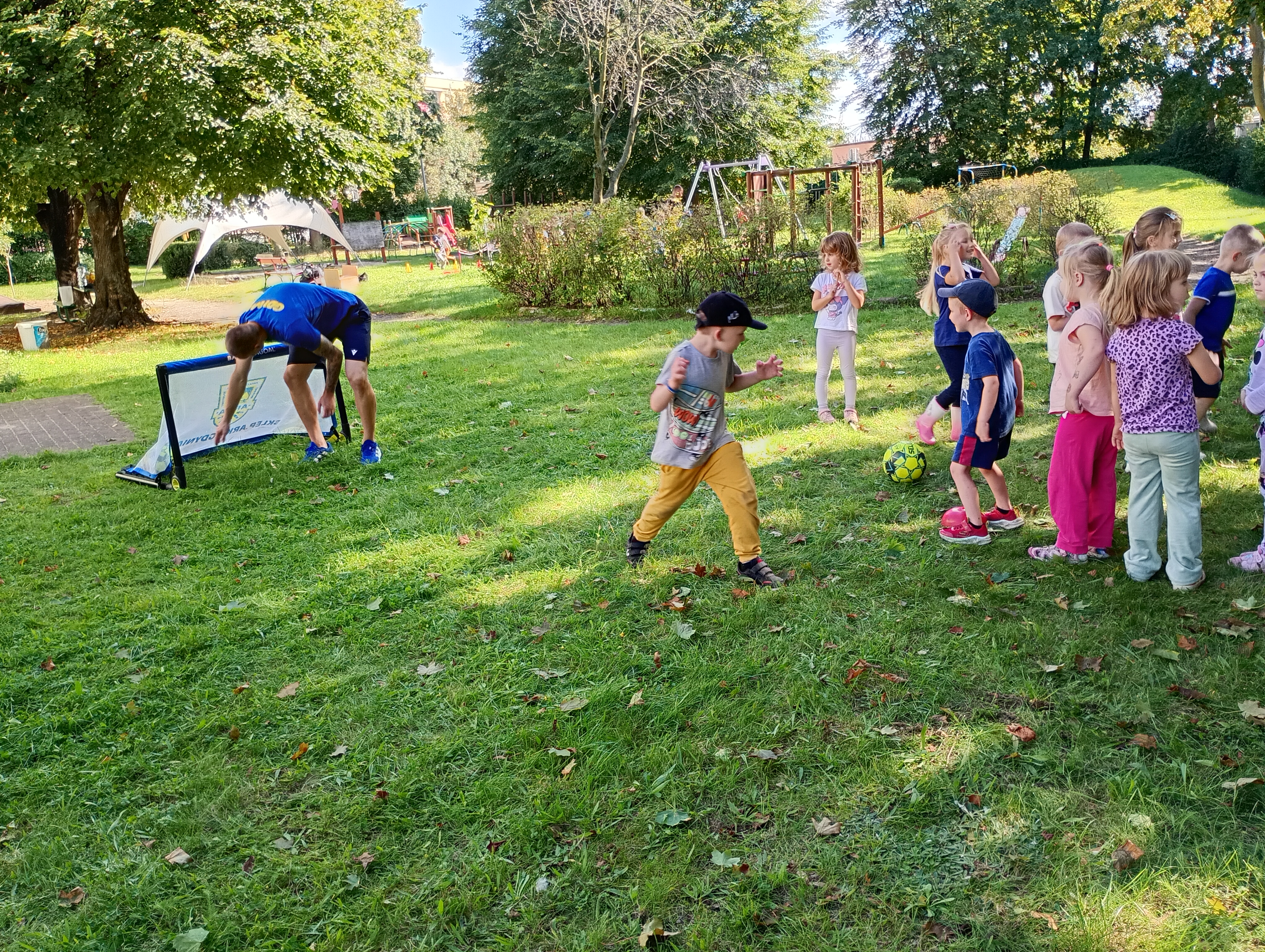 12 września w naszym przedszkolu odbyły się zajęcia sportowe Stowarzyszenia Inicjatywa Arka Gdynia. Po krótkiej rozgrzewce najmłodsi przystąpili do pokazowych zajęć z piłką. Następnie był czas na krótkie rozmowy oraz prawdziwy trening pod kierunkiem bramkarza Arki Gdyni - Jędrzeja Grobelnego.